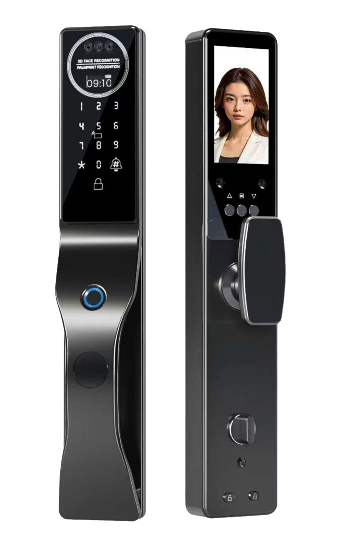 Nổi bật với 7 tính năng: mở khóa bằng nhận diện khuôn mặt (Face ID) + TĨNH MẠCH LÒNG BÀN TAY, mật khẩu, vân tay, thẻ từ, chìa khóa cơ dự phòng, app trên điện thoại. Ruột khóa bằng inox 304 với 5 chốt, kích thước thân khóa 6068. Có tích hợp camera và màn hình hiển thị LCD., tự động báo về app khi chuông cửa hoặc báo động